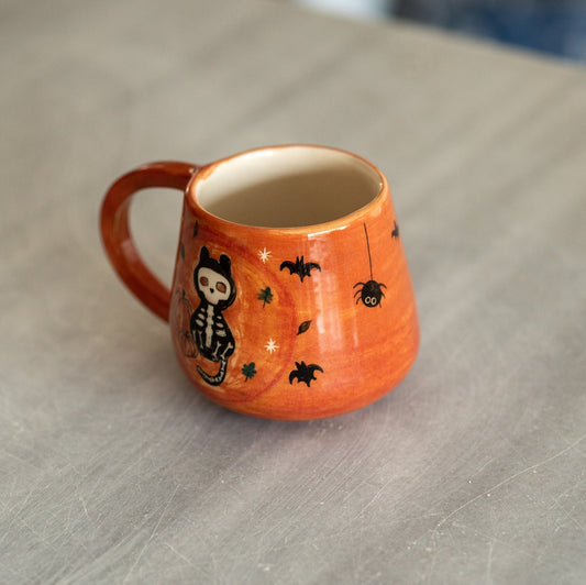Skeleton, Halloween Mug, Handmade Black Cat Coffee Mug, Funny Mug, Ceramic Cat Mom Mug