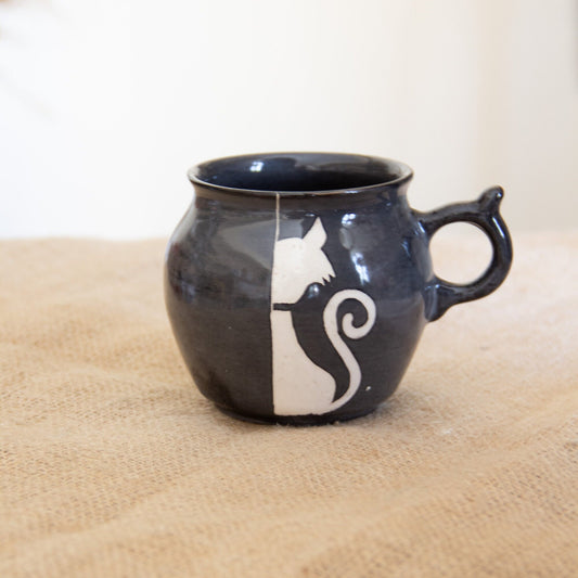 Black Cat Coffee Mug, Handmade Ceramic Mug, Cat Mom Mug