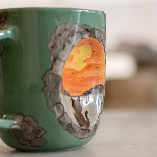 Cute Cat Mug - Sunset Mug, Pottery Mug, Handmade Ceramic Mug