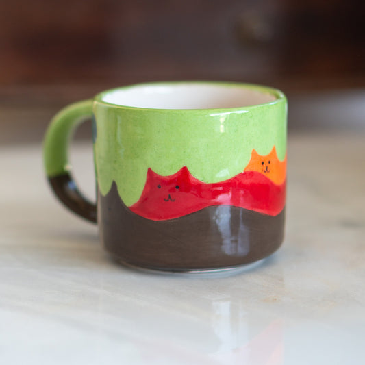 Cat Mountains Coffee Mug - Handmade and Hand-painted, Pottery Mug Ceramic Cup