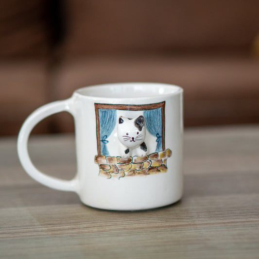 Pottery Cat Mug - Cute Cat Coffee Mug, Handmade Ceramic Mug, Cat Lover Gift