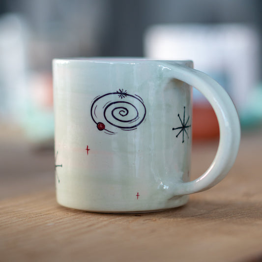 Handmade Atomic Cat Mug - Black Cat Mug, Handmade Ceramic Mug, Pottery Mug, Custom Cat Mug