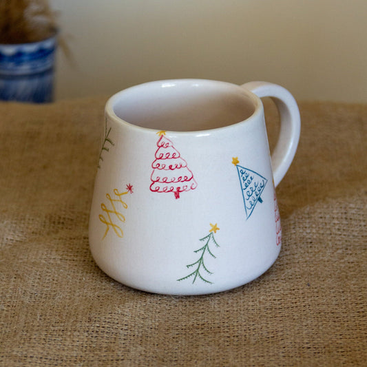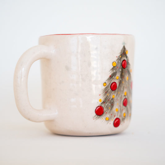 Christmas Coffee Mug - Handmade Pottery, Christmas Tree Decorated Mug