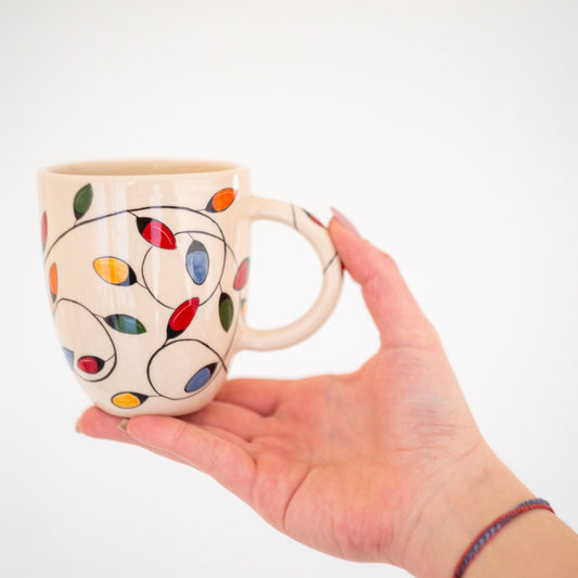 Christmas Lights Coffee Mug, Handmade Pottery Coffee Mug, Noel Gift Idea