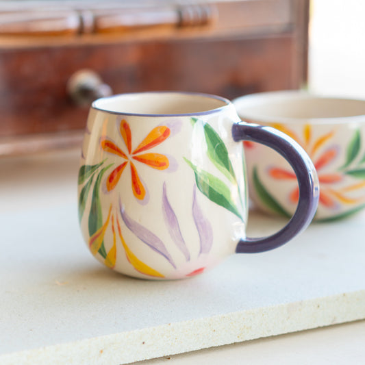 Colorful Blossom Tea Cup, Handmade Ceramic Mug