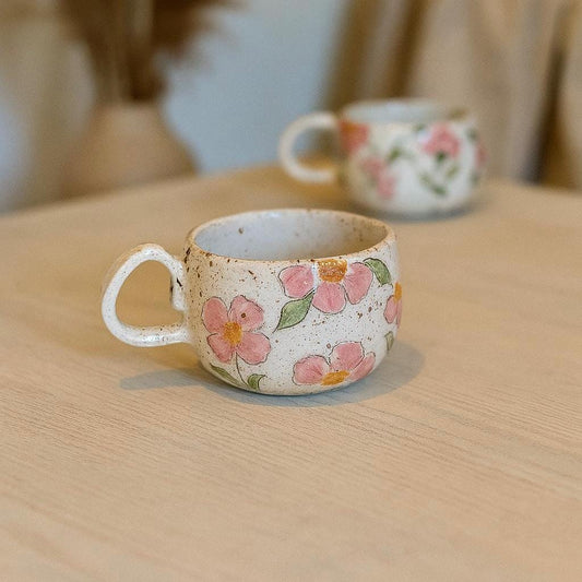 Floral Coffee Mug - Flower Tea Cup Set, Handmade Ceramic Mug, Floral Home Decor