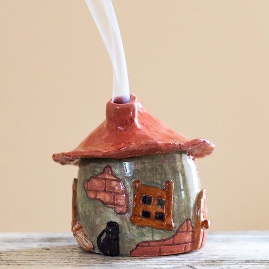 Haunted House, Handmade Halloween Decor, Halloween Witch Fairy House, Ceramic Incense Holder, Candle Holder