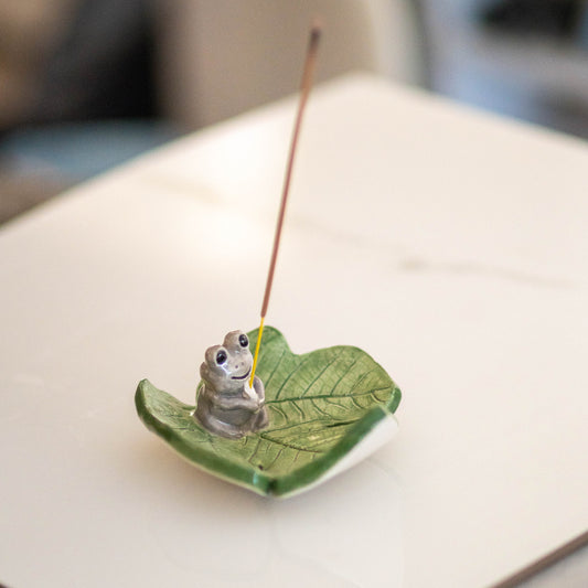 Incense Holder, Frog On Leaf Handmade Ceramic Censer, Animal Lover Gift