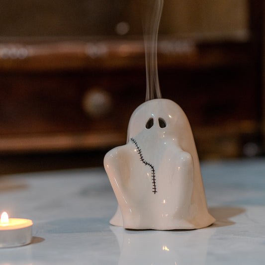 Handmade Ceramic Ghost Incense Holder: Whimsical Halloween Decor