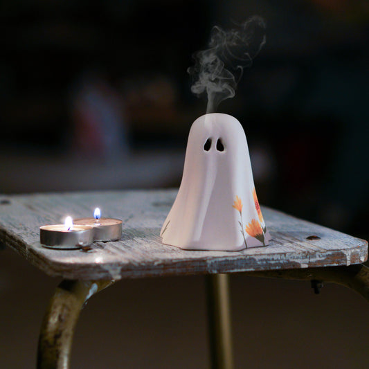 Floral Ghost Incense Holder: Handmade Ceramic Halloween Decor
