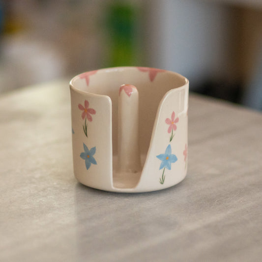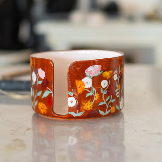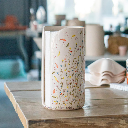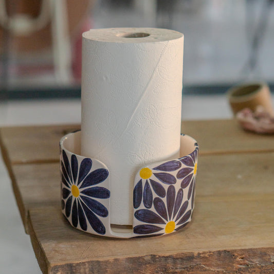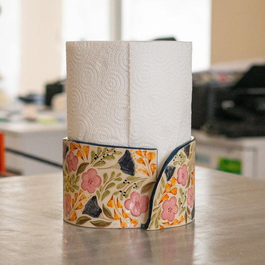Handmade Floral Ceramic Paper Towel Holder - Paper Roll Holder