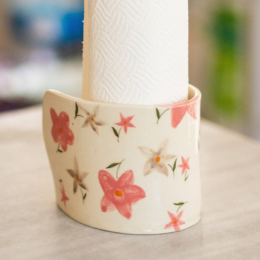 Paper Towel Holder - Floral Kitchen Decor, Handmade Ceramic Paper Roll Holder