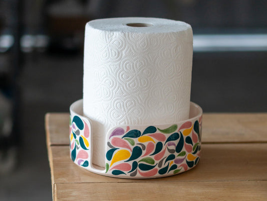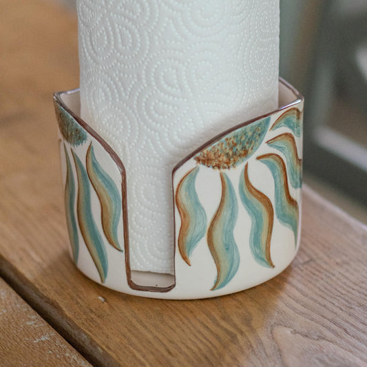 Ceramic Towel Holder, Handmade Paper Towel Holder, Floral Kitchen Decor
