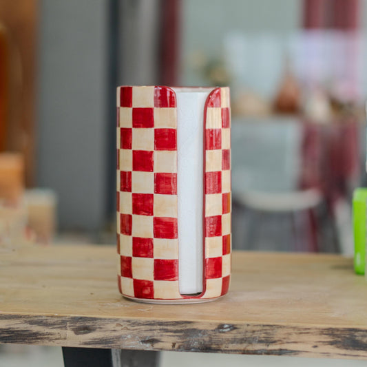 Handmade Checkered Ceramic Paper Towel Holder: Farmhouse Kitchen Decor