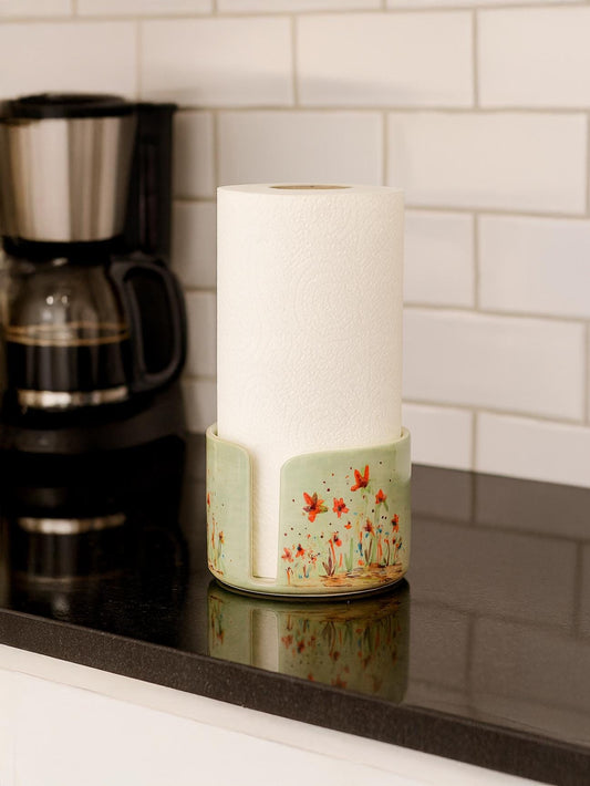 Ceramic Paper Towel Holder - Floral Kitchen Decor, Paper Roll Holder