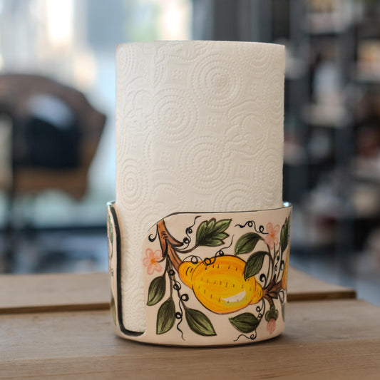 Paper Towel Holder Lemon Dream, Paper Roll Holder, Handmade Pottery Kitchen Lemon Decor