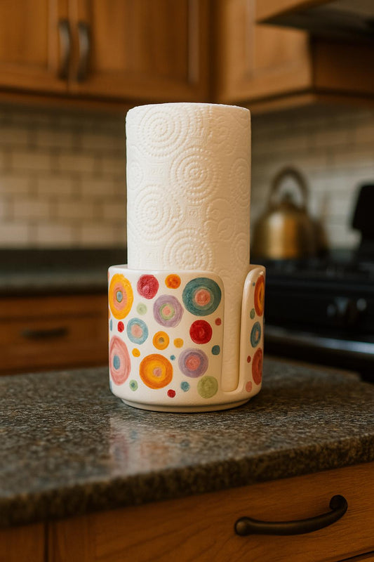 Ceramic Paper Towel Holder, Hand-Painted Paper Towel Holder - Vibrant Dots Ceramic Kitchen Roll Stand, Unique Kitchen Organizer