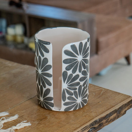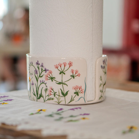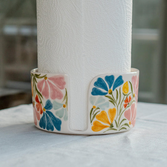 Handmade Ceramic Paper Towel Holder: Floral Kitchen Decor