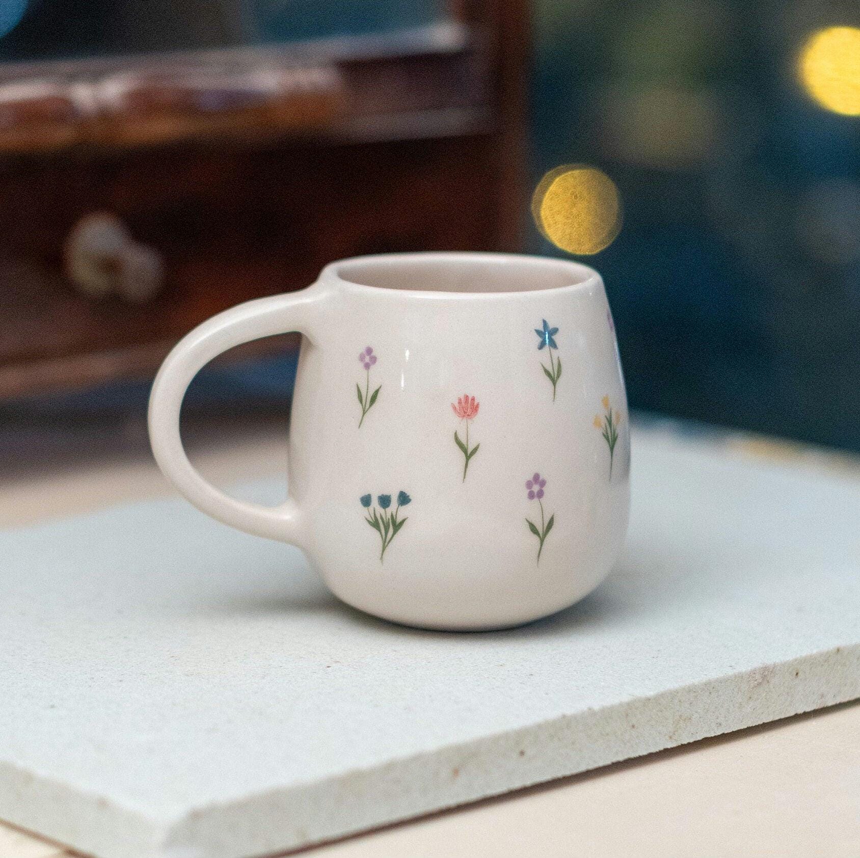 🌼 Colorful Blossom Tea Cup - Handmade Ceramic Coffee Mug with Hand-Painted Flowers 🌼