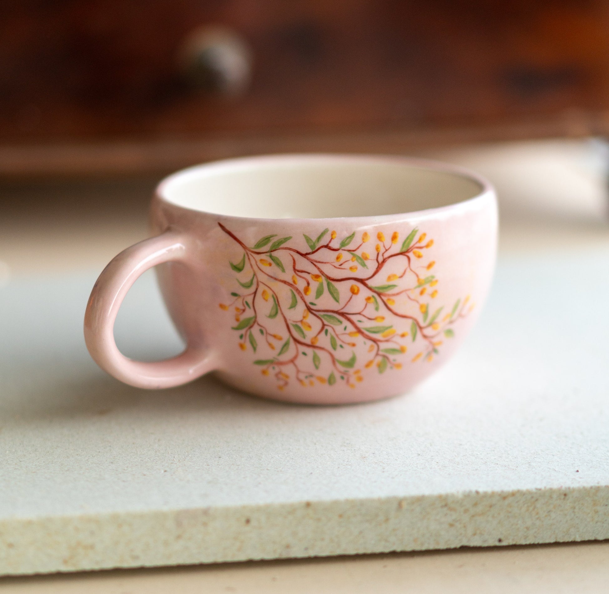 Ideal for sale in stores specializing in unique, handcrafted items, our Floral Coffee Cup is a thoughtful and beautifully crafted addition. It's perfect for customers seeking meaningful, artisanal gifts that stand out.
