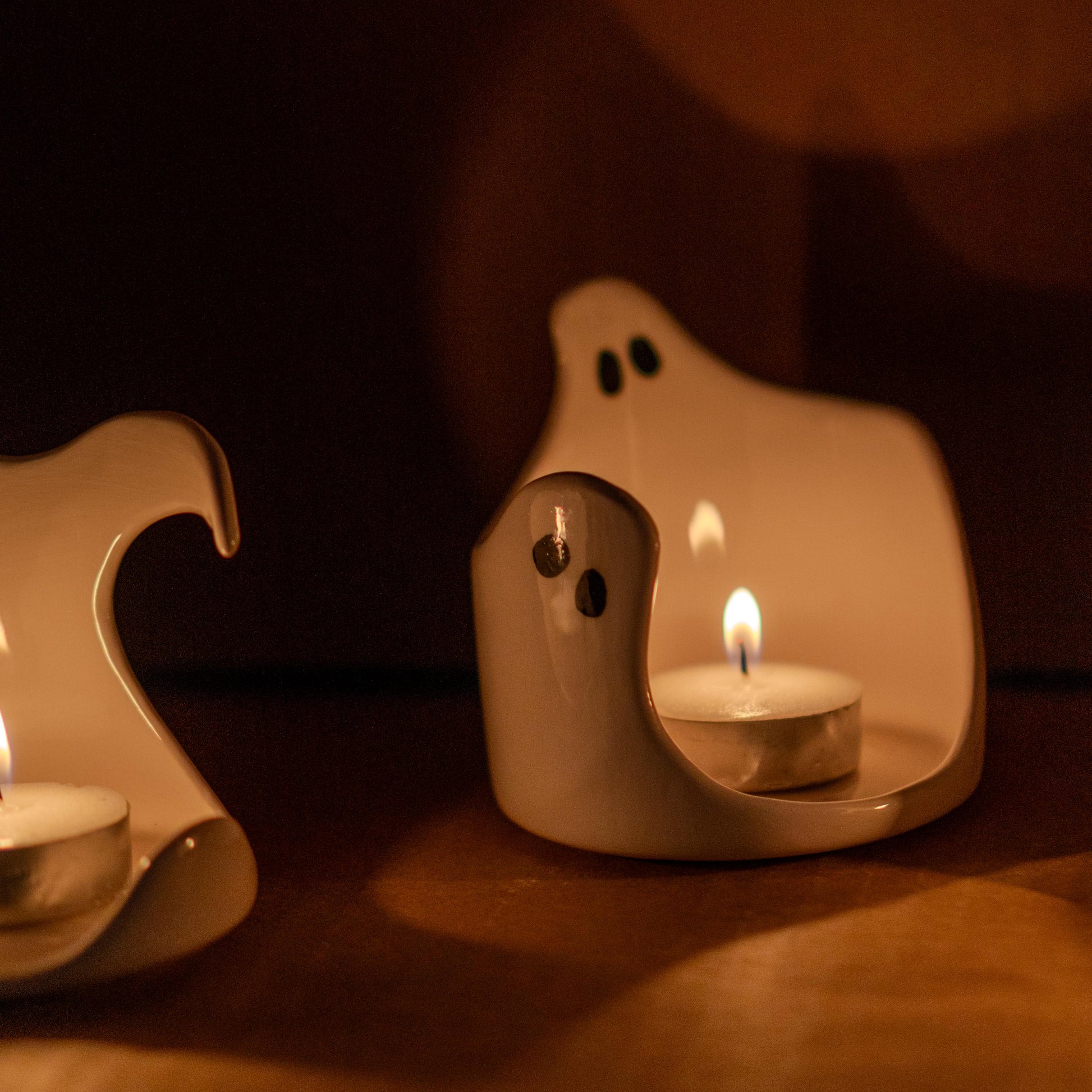 👻 Ceramic Ghost Tealight Candle Holders - Handmade Halloween Decor - Cute & Spooky Home Accent for Fall & Beyond