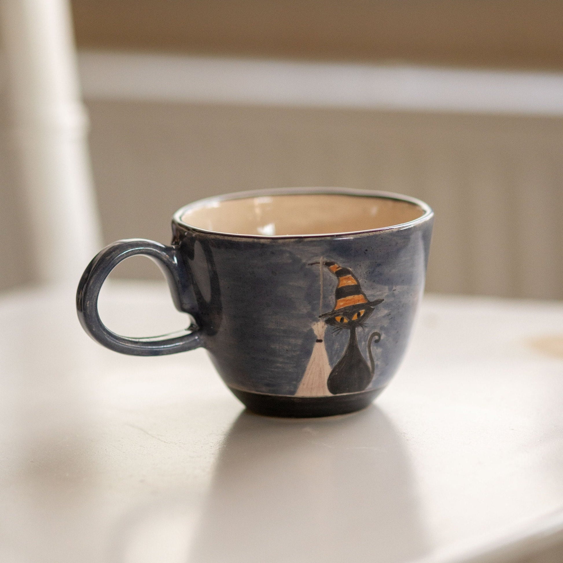 Cute Cat Mug - Witch Cat, Black Cat Pottery Mug, Halloween Gift Mug 🎃