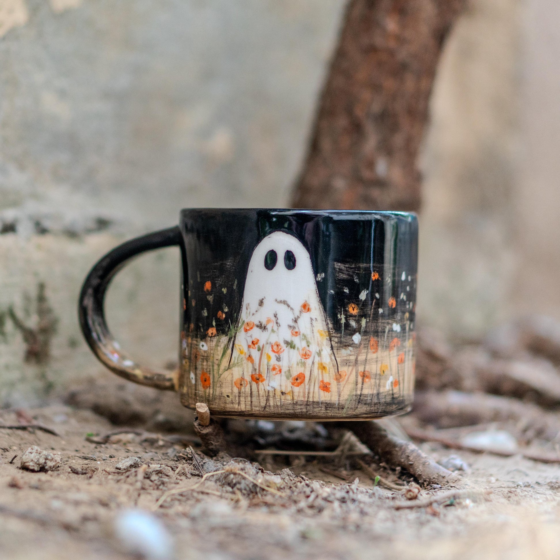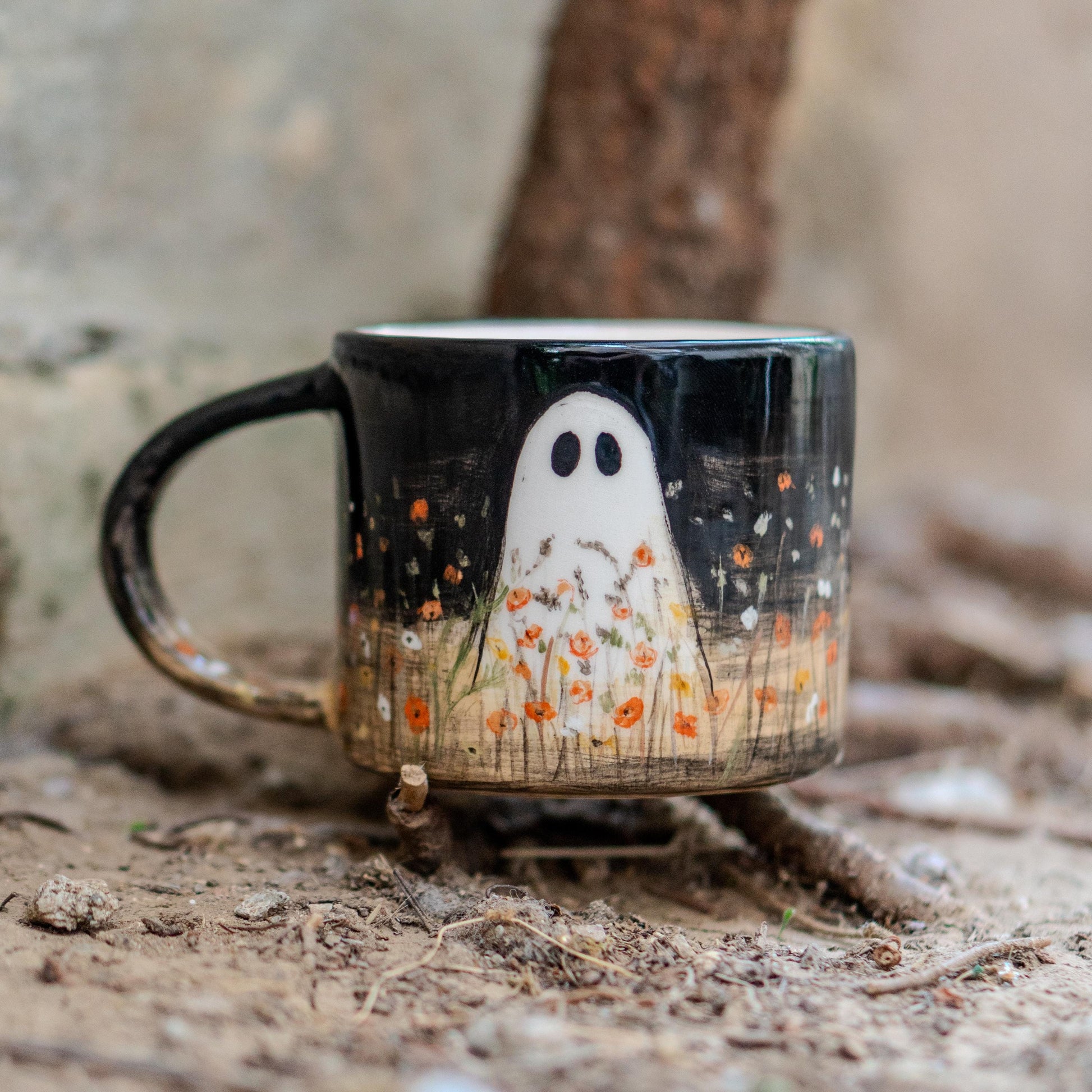 Halloween Mug - Ghost Mug, Handmade Ceramic Mug, Handmade Pottery, Haunted Mug, Halloween Gift